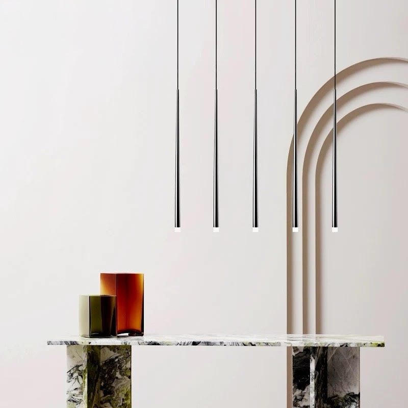The VOID combines minimalist design with high-efficiency LED performance. Versatile in function, it works beautifully as a single spotlight, a standalone pendant, or grouped together to create a striking centerpiece above the dining table.